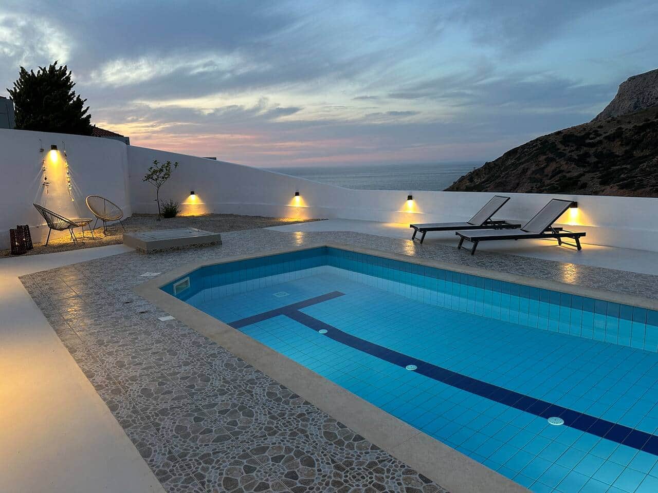 Der Pool gehört dir ganz allein. Mit Poolliegen und Sonnenschirmen lässt sich hier der ganze Tag entspannt verbringen.