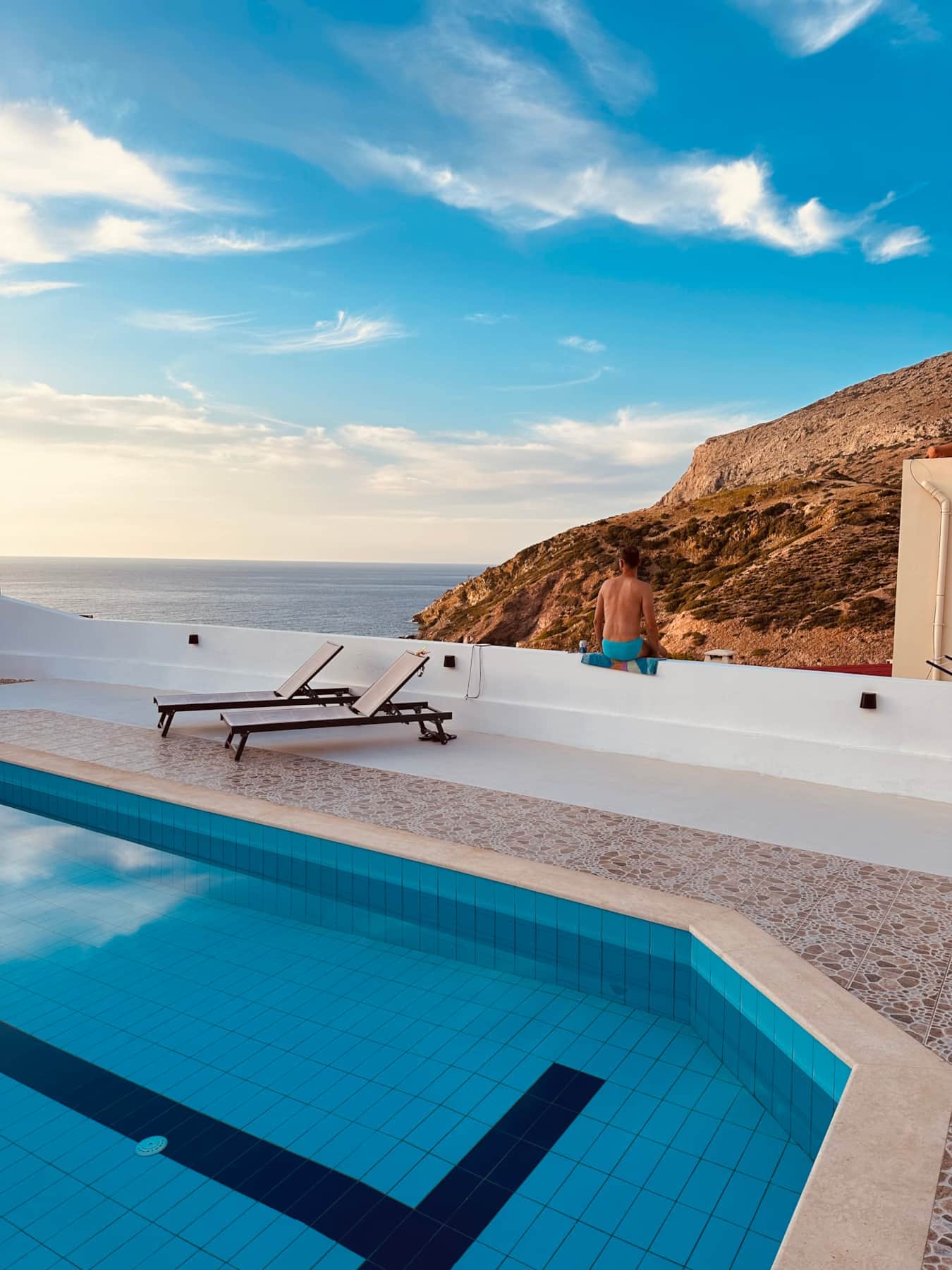 Der Pool gehört dir ganz allein. Mit Poolliegen und Sonnenschirmen lässt sich hier der ganze Tag entspannt verbringen.